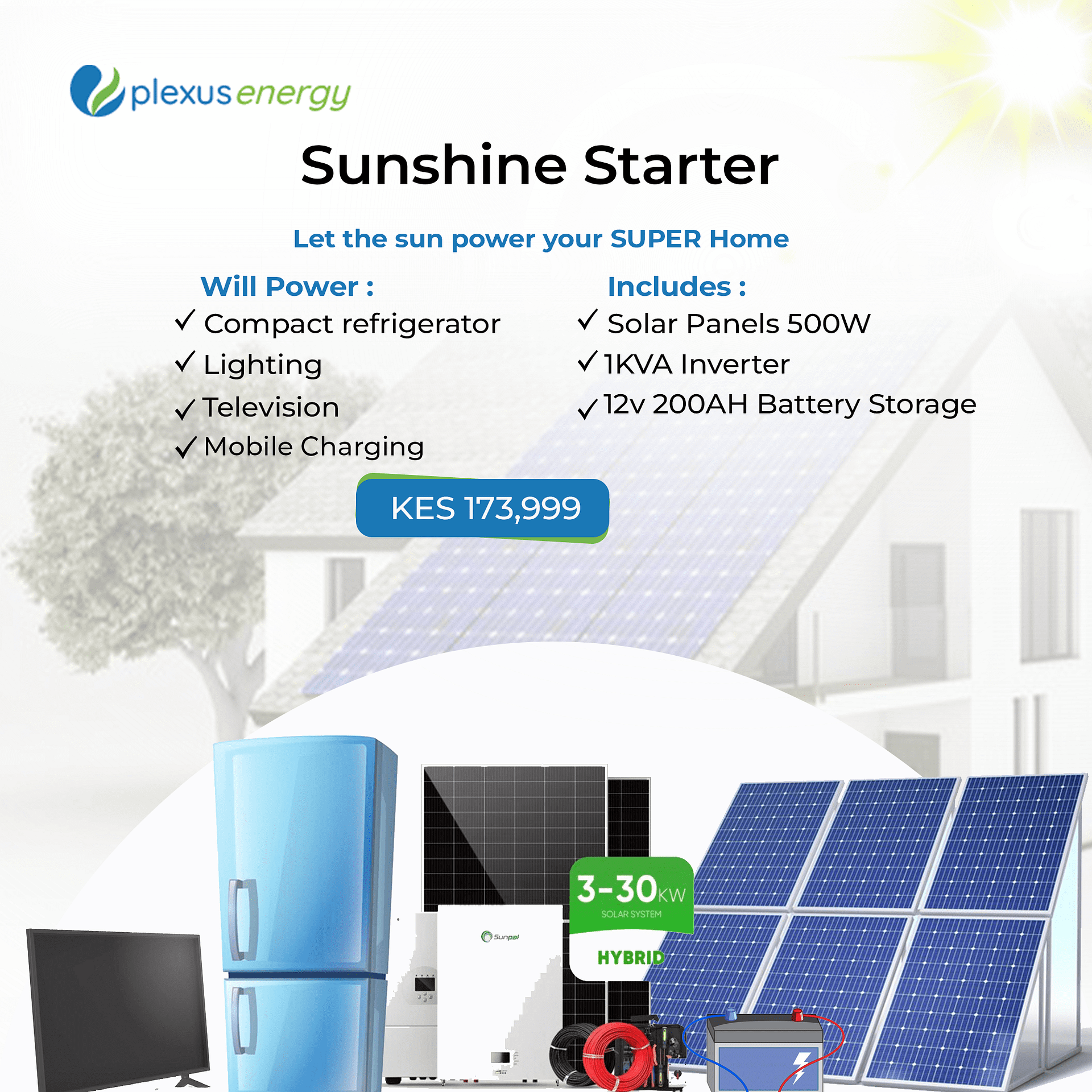 This all-in-one solution (Sunshine Starter) is tailored to support essential devices such as compact refrigerators, lighting, and televisions, ensuring uninterrupted power for your everyday needs.